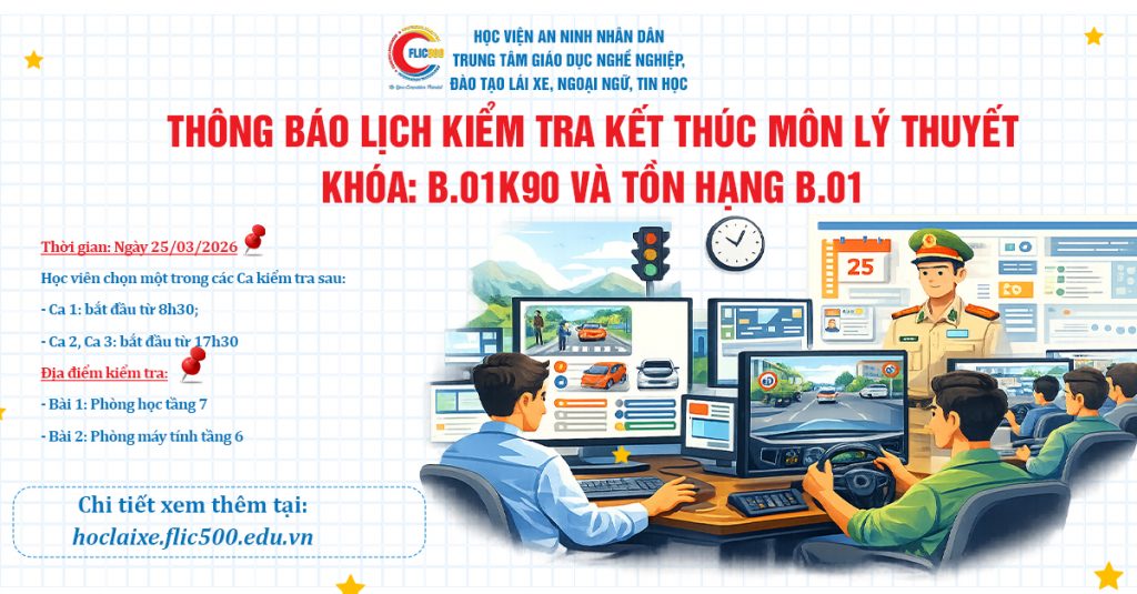 Danh sách học viên kiểm tra môn lí thuyết khóa B.01K90 và tồn hạng B.01: xem tại đây