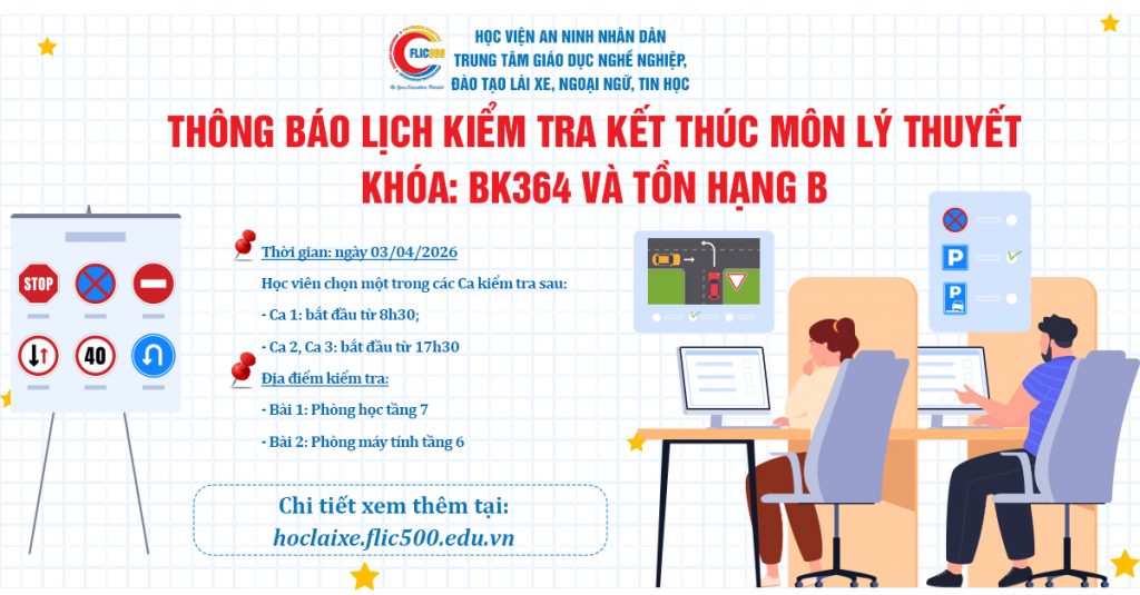 Danh sách học viên kiểm tra môn lí thuyết khóa BK364 và tồn hạng B: xem tại đây