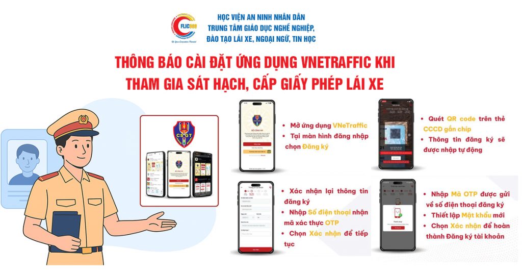• 100% học viên phải cài đặt và kích hoạt VNeID mức độ 2 và VNeTraffic mức 2.